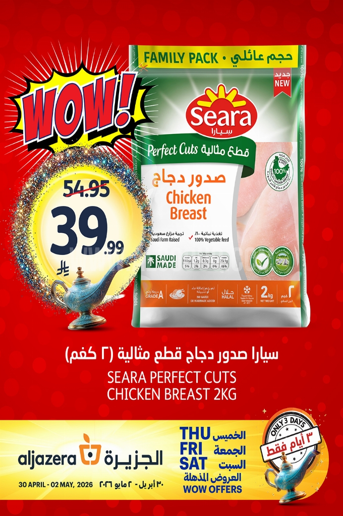 عروض أسواق الجزيرة اليوم 30 أبريل 2026 الموافق 13 ذو القعدة 1447 سلتك اليوم بتطلع أوفر!. تسوقوا الآن مجموعة من المنتجات المميزة المختارة بعناية بأسعار وقيمة تستحق التجربة وتمنحك أكثر مما تتوقع.