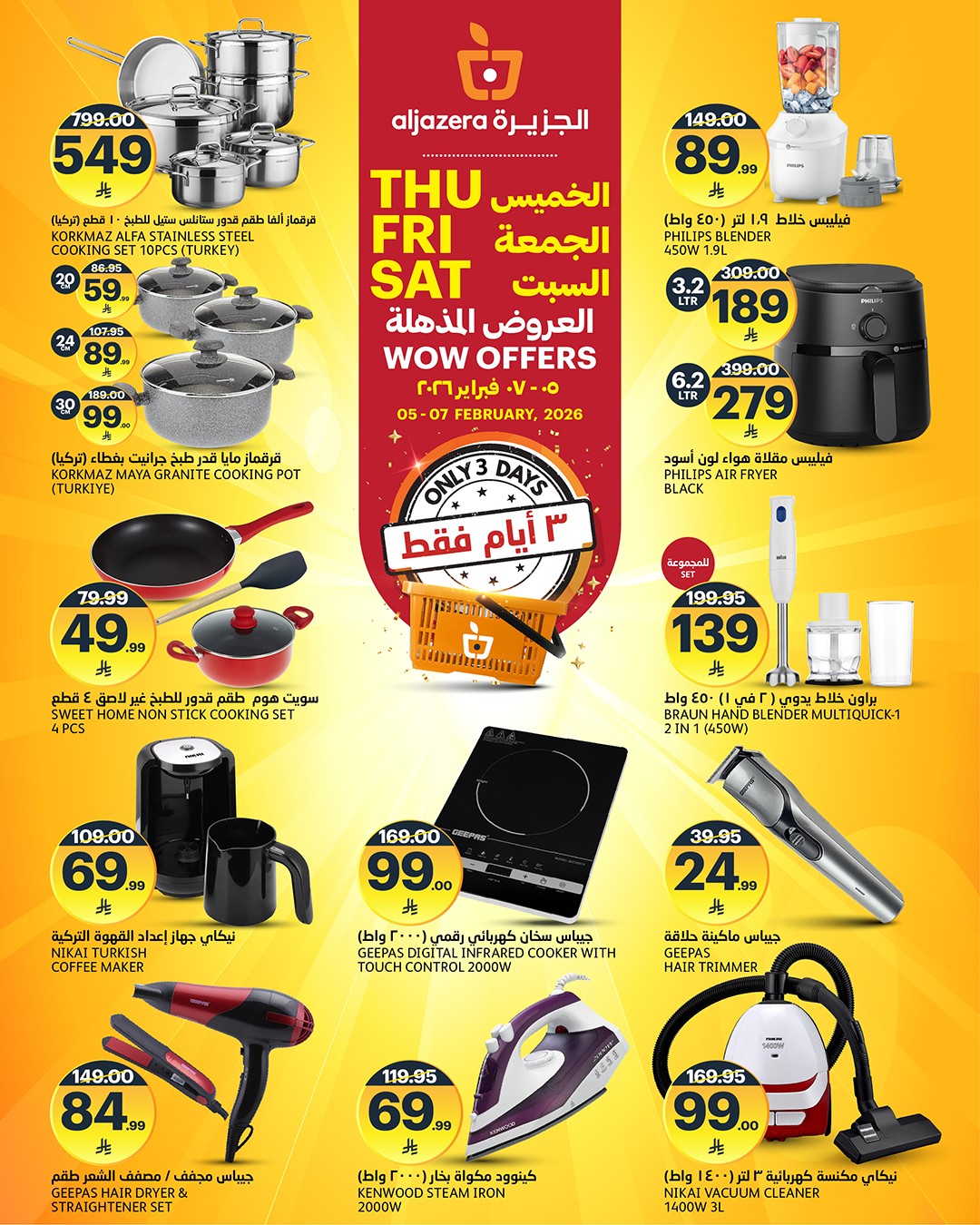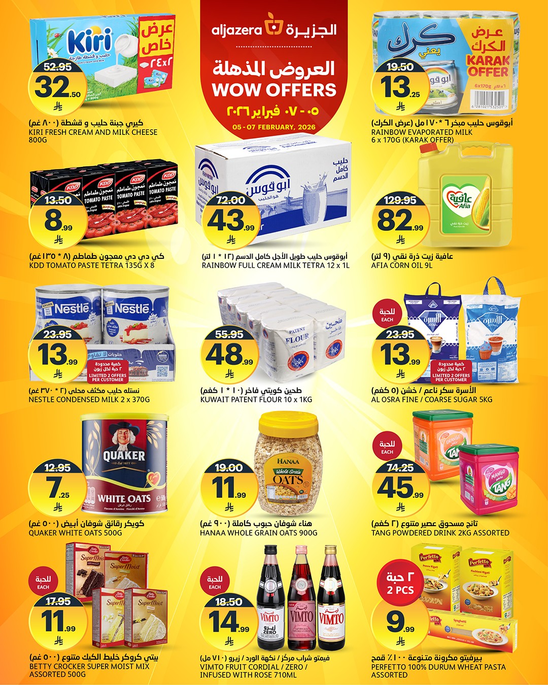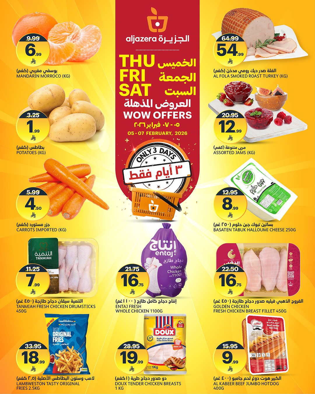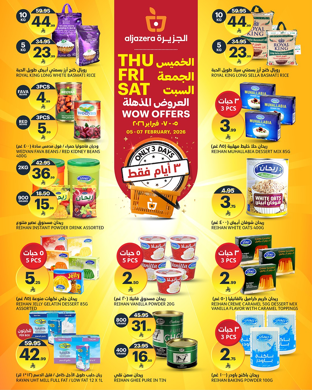 عروض الجزيرة اليوم 5 فبراير 2026 الموافق 17 شعبان 1447 لمدة ٣ أيام. عروض توفير جديدة على المنتجات اليومية بأسعار منافسة وجودة مضمونة لتجربة تسوق ذكية وتوفير حقيقي لكل الميزانيات.