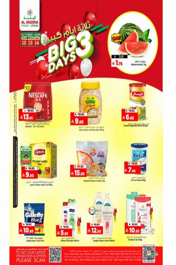 عروض المدينة هايبر اليوم 12 أكتوبر 2025 الموافق 20 ربيع الاخر 1447 عروض 3 أيام كبيرة . استعد لخصومات مذهلة وصفقات لا تقبل المنافسة تسوق منتجاتك المفضلة بأسعار لا تقاوم.