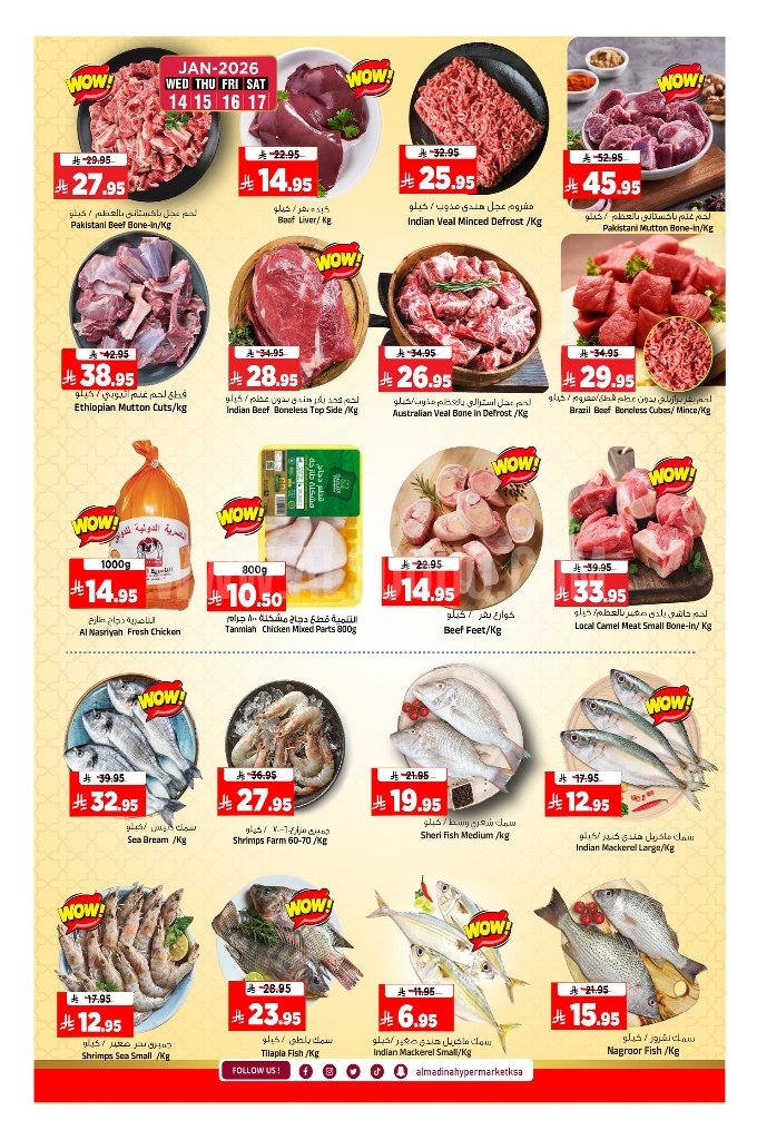 عروض المدينة هايبر اليوم 14 يناير 2026 الموافق 25 رجب 1447 صفقات الأسعار. نهاية العام مع الطازج أحلى! تخفيضات على كل المنتجات الطازجة لتعيش تجربة تسوق ما بتنساها وتعيدها مرة ومرتين.