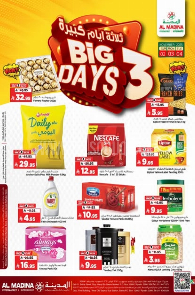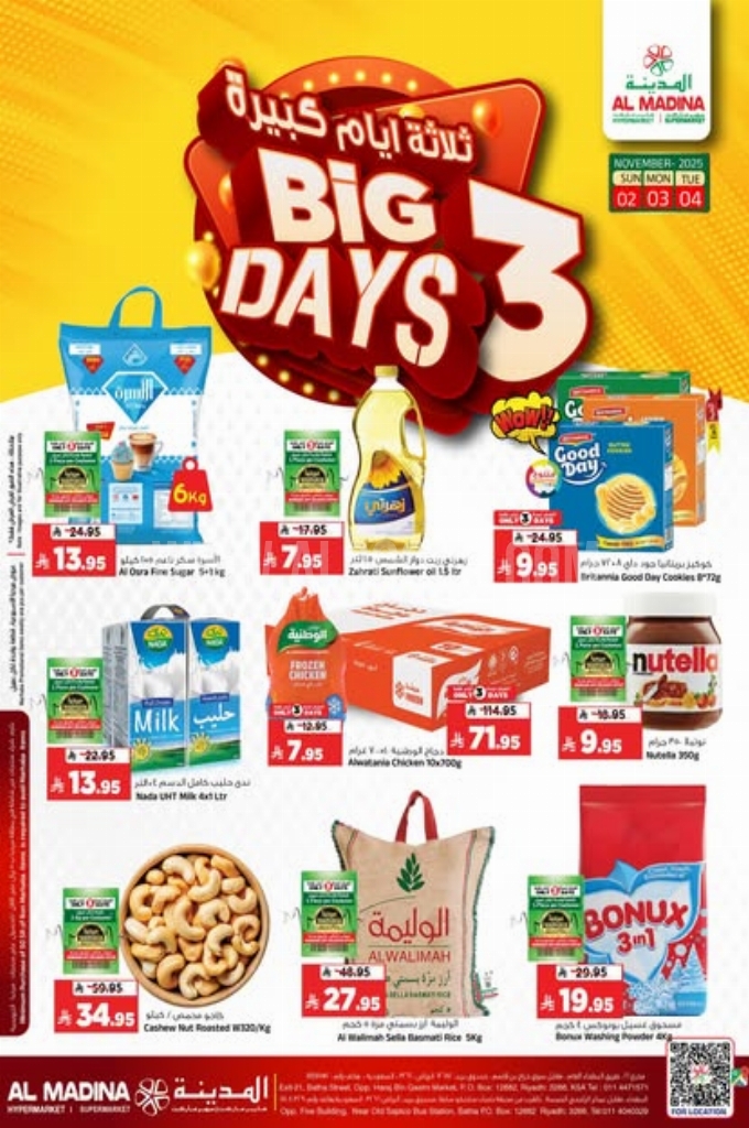 عروض المدينة هايبر اليوم 2 نوفمبر 2025 الموافق 11 جمادى الاولى 1447 عروض ثلاثة أيام كبيرة