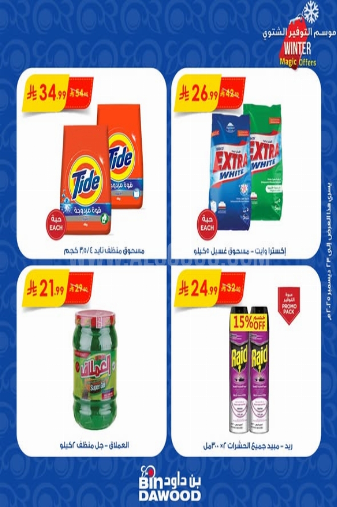 عروض بن داود اليوم الخميس 18 ديسمبر وحتى 23 ديسمبر 2025 عروض موسم الشتاء. تجربة تسوق استثنائية تجدونها لدى متاجر بن داود في جميع الفروع. استمتعوا بتخفيضات مميزة وحصرية على كافة احتياجاتكم اليومية! عروض بن داود الخميس: تجدون ضمن منتجات الأسبوع: بسكويت جوز الهند، كذلك شوكولاتة ميلكا، ايضا شوكولاتة بالحليب والبندق، بسكويت بالكريمة واللوز، مياه باناما بلو، عصائر أرما، جولديلوكس ماكارون بالزبدة، جبنة إيدن، بالاضافة الى قهوة كوبيكو روبوستا، زيت ذرة عافية، كما ويتوفر لدينا ايضا زيت زيتون أوليو ساجيو، كذلك نودلز إندومي، بامية، فلفل أحمر مجروش، عسل بالمكسرات، كذلك يوجد بسكويت ميلز سبيشل، وإليكم الصور الآتية على موقع عروض