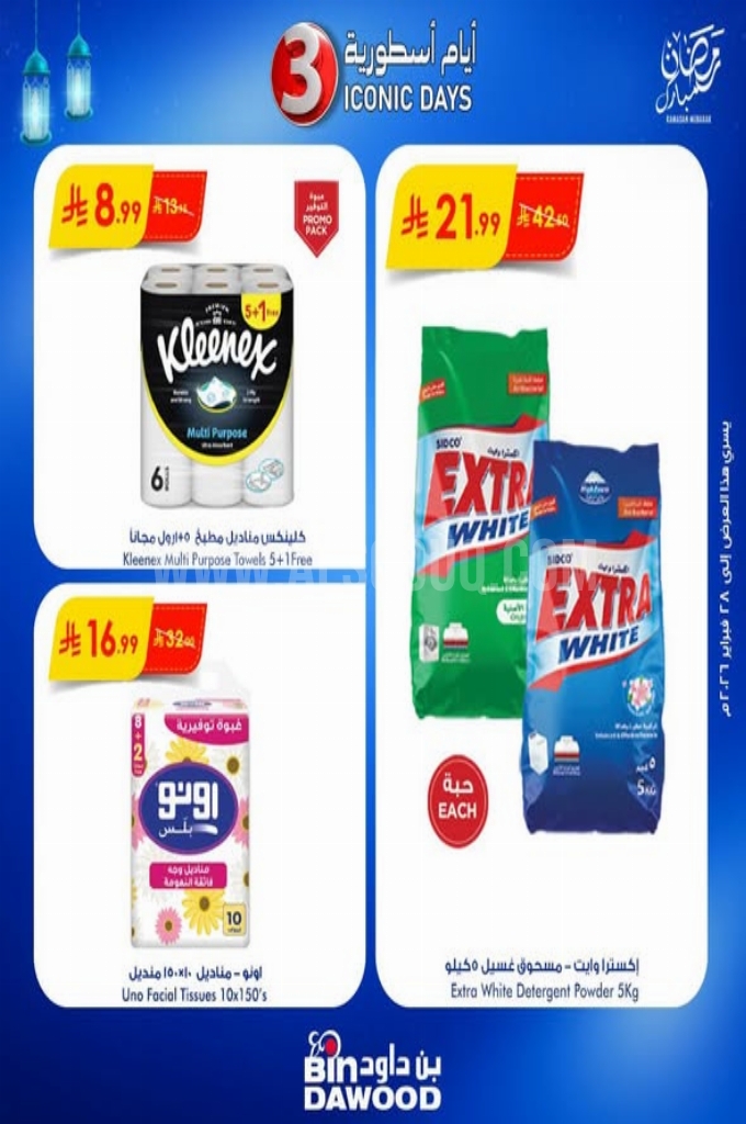 عروض بن داود اليوم 28 فبراير 2026 الموافق 11 رمضان 1447 عروض الأسطورة . استعد لخصومات مذهلة وصفقات لا تقبل المنافسة تسوق منتجاتك المفضلة بأسعار لا تقاوم.