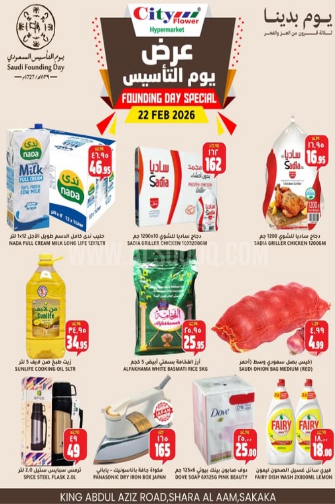 عروض سيتي فلور اليوم 22 فبراير 2026 الموافق 5 رمضان 1447 عروض يوم التأسيس . استعد لخصومات مذهلة وصفقات لا تقبل المنافسة تسوق منتجاتك المفضلة بأسعار لا تقاوم.