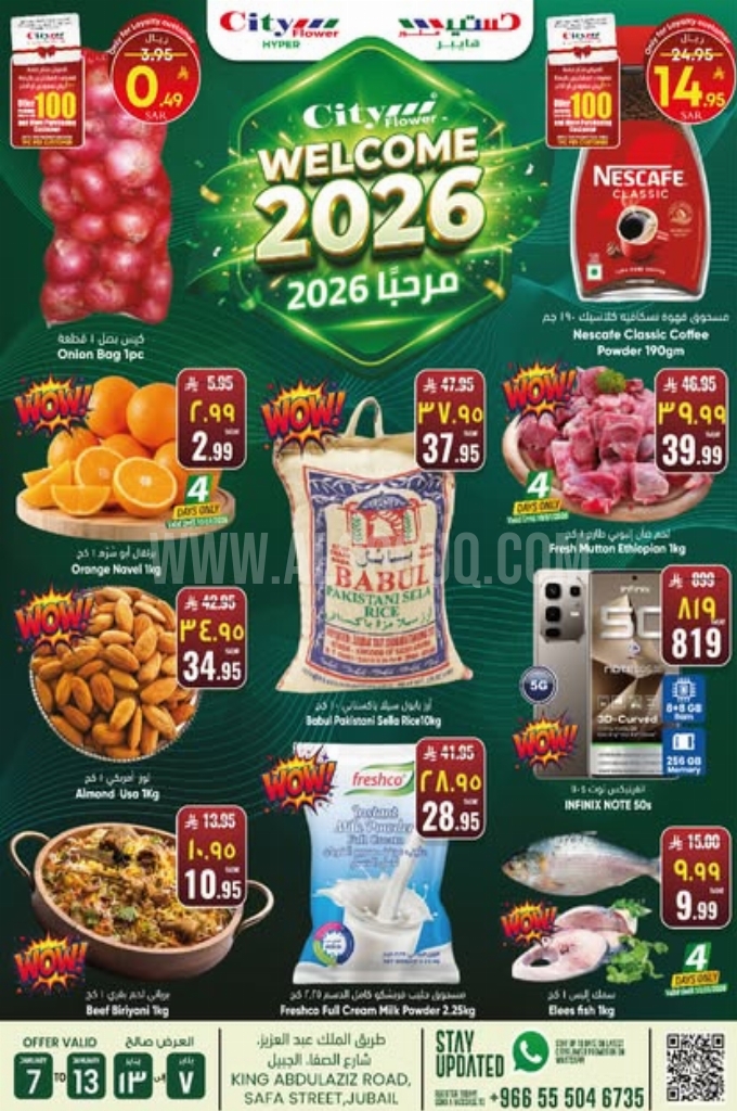 عروض سيتي فلور الجبيل اليوم 7 يناير 2026 الموافق 18 رجب 1447 عروض مرحبا 2026