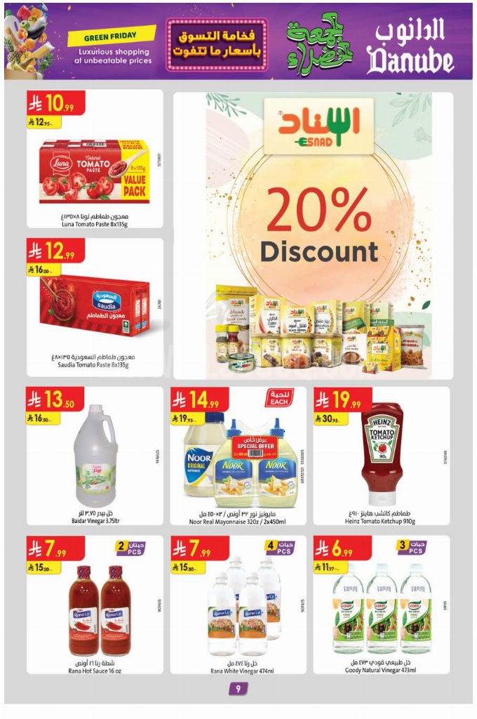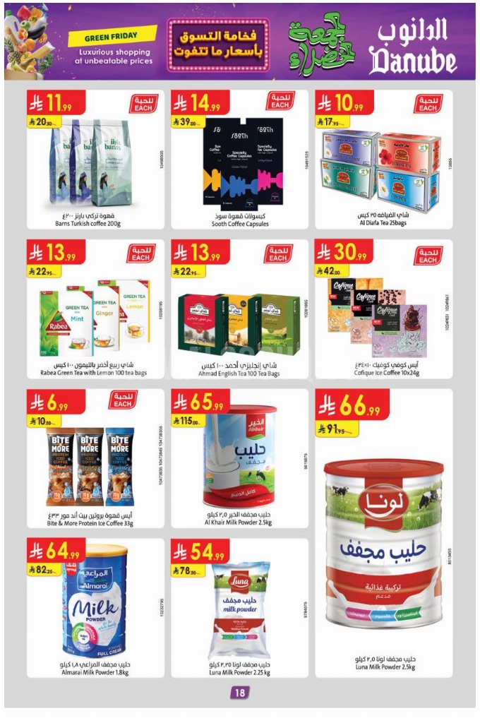 عروض الدانوب الدمام والخبر الأسبوعية 19 نوفمبر 2025 الموافق 28 جمادى الأولى 1447 عروض الجمعة الخضراء. الجودة تصنع فرقاً والعروض تصنع قرارك! اختر الذكاء اليوم وابتسم للصفقة غداً. عروض الدانوب الدمام اليوم الأربعاء: تجدون ضمن منتجات الأسبوع: دجاج قطع مشكلة ساديا، أفخاذ دجاج ساديا، مرتديلا بقري/ديك رومي سنيورة، سجق ديك رومي سنيورة، أجنحة دجاج مشكلة الوطن، دجاج مفروم الدوحة، وإليكم الصور الآتية على موقع عروض