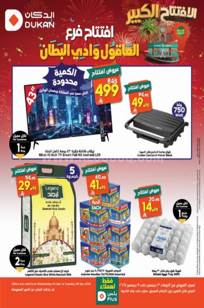 عروض الدكان اليوم 2 ديسمبر 2025 الموافق 11 جمادى الاخر 1447 عروض الافتتاح الكبير . استعد لخصومات مذهلة وصفقات لا تقبل المنافسة تسوق منتجاتك المفضلة بأسعار لا تقاوم.