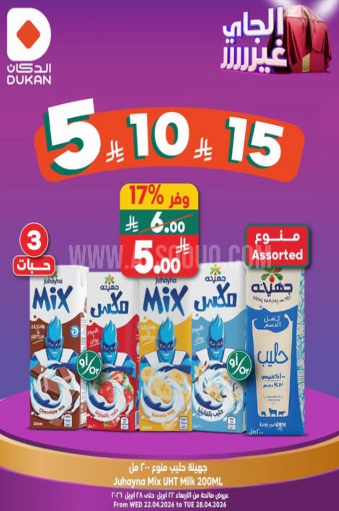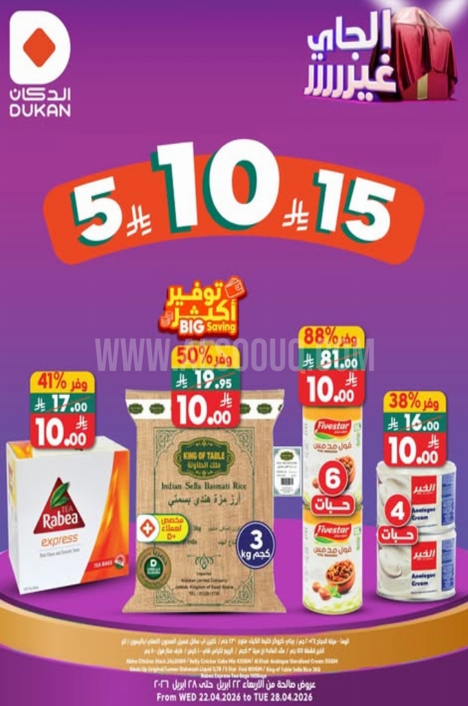 عروض الدكان اليوم 21 أبريل 2026 الموافق 4 ذي القعدة 1447 عروض التوفير . استعد لخصومات مذهلة وصفقات لا تقبل المنافسة تسوق منتجاتك المفضلة بأسعار لا تقاوم.