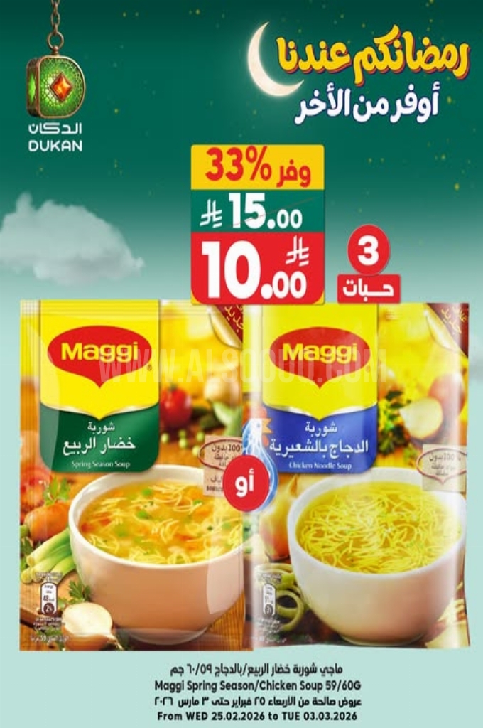 عروض الدكان اليوم 25 فبراير 2026 الموافق 8 رمضان 1447 رمضانكم عندنا أوفر من الاخر . استعد لخصومات مذهلة وصفقات لا تقبل المنافسة تسوق منتجاتك المفضلة بأسعار لا تقاوم.