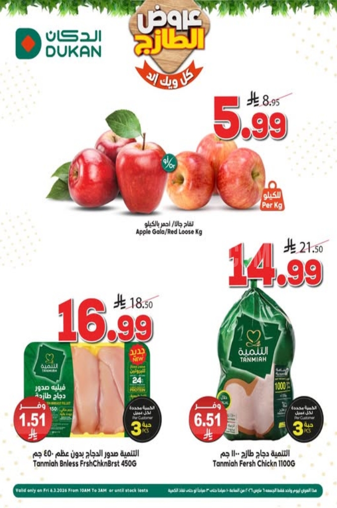 عروض الدكان اليوم 5 مارس 2026 الموافق 16 رمضان 1447 كل عروض الطازج . استعد لخصومات مذهلة وصفقات لا تقبل المنافسة تسوق منتجاتك المفضلة بأسعار لا تقاوم.