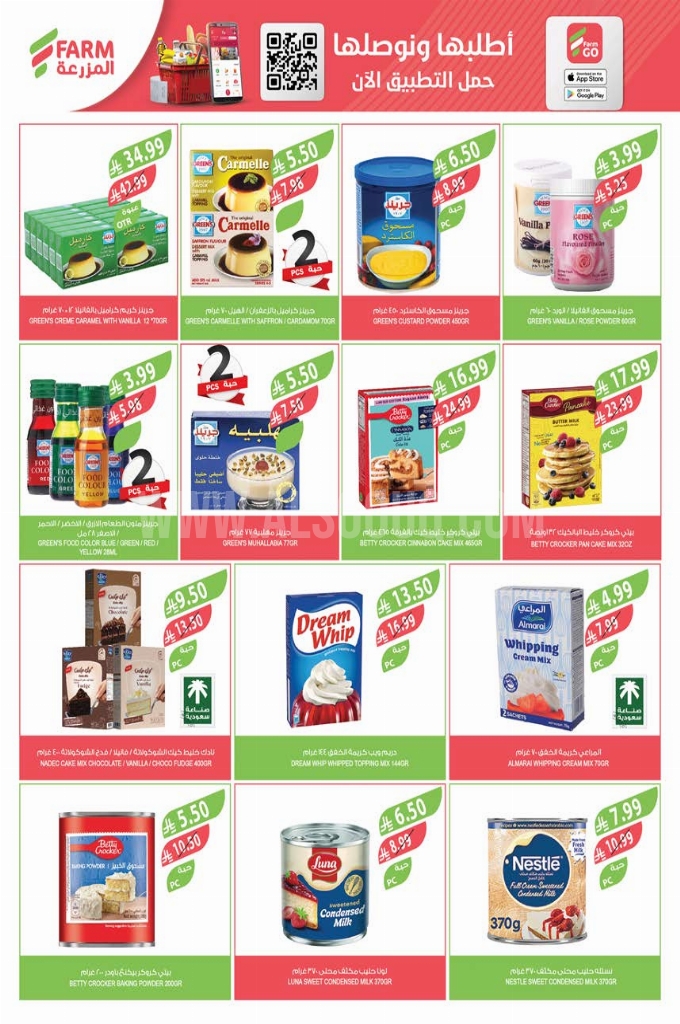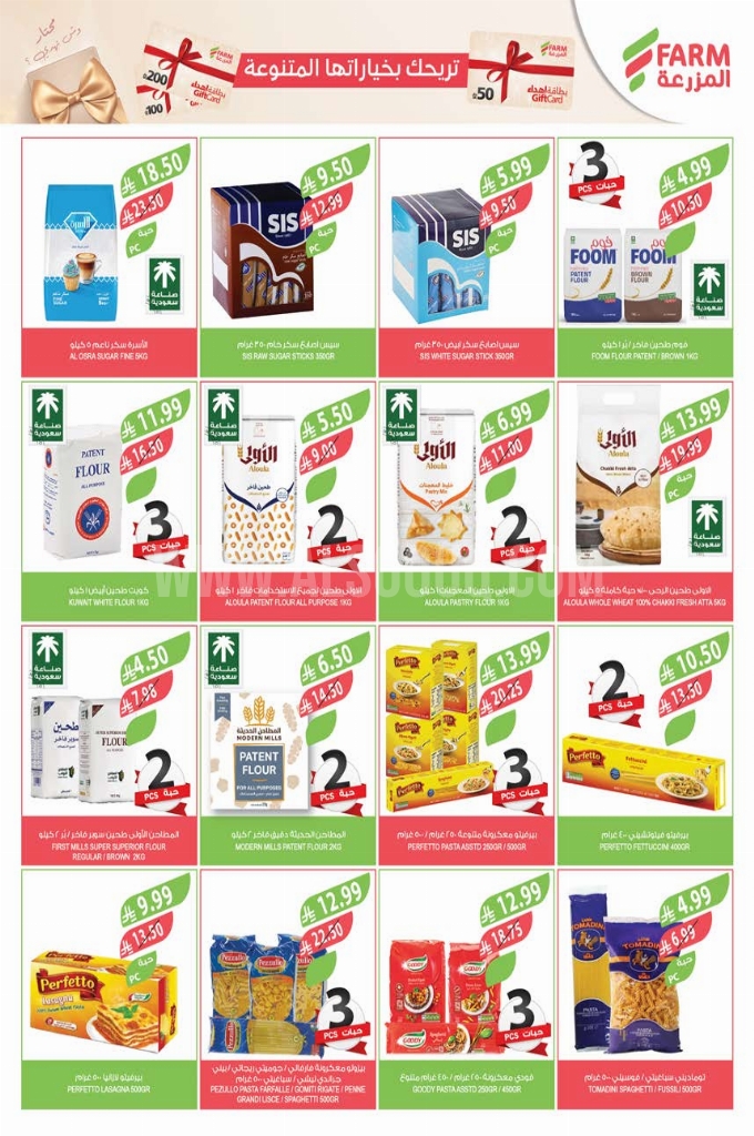 عروض أسواق المزرعة الرياض الأسبوعية 4 مارس 2026 الموافق 15 رمضان 1447 سفرة رمضان أوفر. اجعل من تسوقك اليومي تجربة ذكية، حيث تجتمع الأسعار التنافسية مع القيمة الاستثنائية لكل ريال، لنقدم لك حلول توفير واقعية تلائم ميزانيتك وتفوق توقعاتك في كل مرة. انطلق في رحلة تسوق استثنائية تجمع بين أقوى العروض وأفضل الأسعار على السلع الأساسية والمستلزمات اليومية. نمنحك فرصة حقيقية للتوفير الذكي مع جودة موثوقة وخيارات متنوعة تلبي جميع احتياجات المنزل. لا تدع الفرصة تفوتك، العروض محدودة والطلب كبير. تسوق الآن واستثمر في الجودة التي تدوم بسعر لن يتكرر. عروض أسواق المزرعة لهذا الأسبوع: ومما تجدونه اليوم من المنتجات المميزة التي اخترناها خصيصاً لكم: فول مدمس كاليفورنيا جاردن، طحينة حلواني، مكرونة لولو، مكرونة تريفا، مكرونة بانزاني، فاصوليا مطبوخة كاليفورنيا جاردن، وإليكم الصور الآتية على موقع عروض