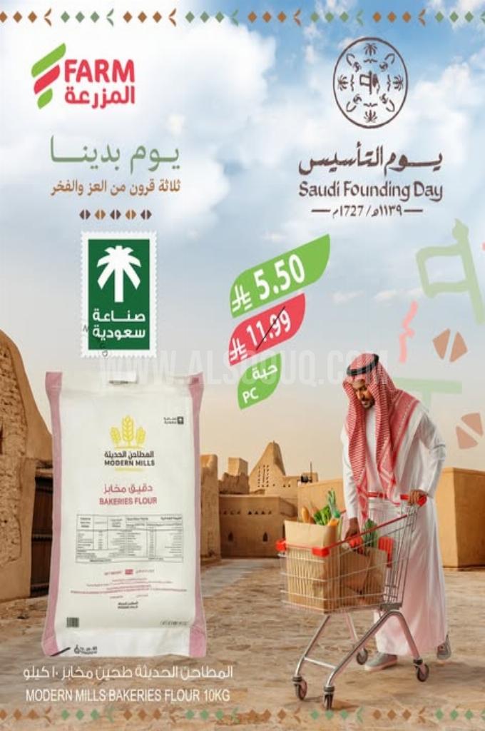 عروض أسواق المزرعة اليوم 22 فبراير 2026 الموافق 5 رمضان 1447 عروض يوم التأسيس . استعد لخصومات مذهلة وصفقات لا تقبل المنافسة تسوق منتجاتك المفضلة بأسعار لا تقاوم.
