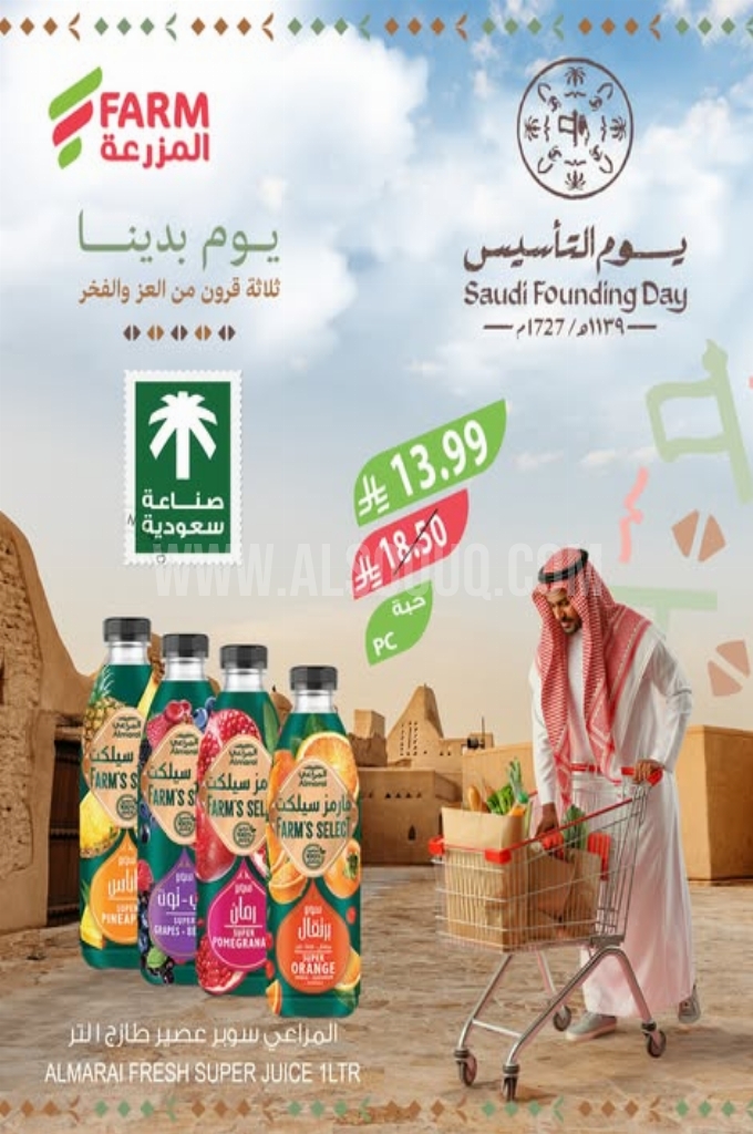 عروض أسواق المزرعة اليوم 22 فبراير 2026 الموافق 5 رمضان 1447 عروض يوم التأسيس
