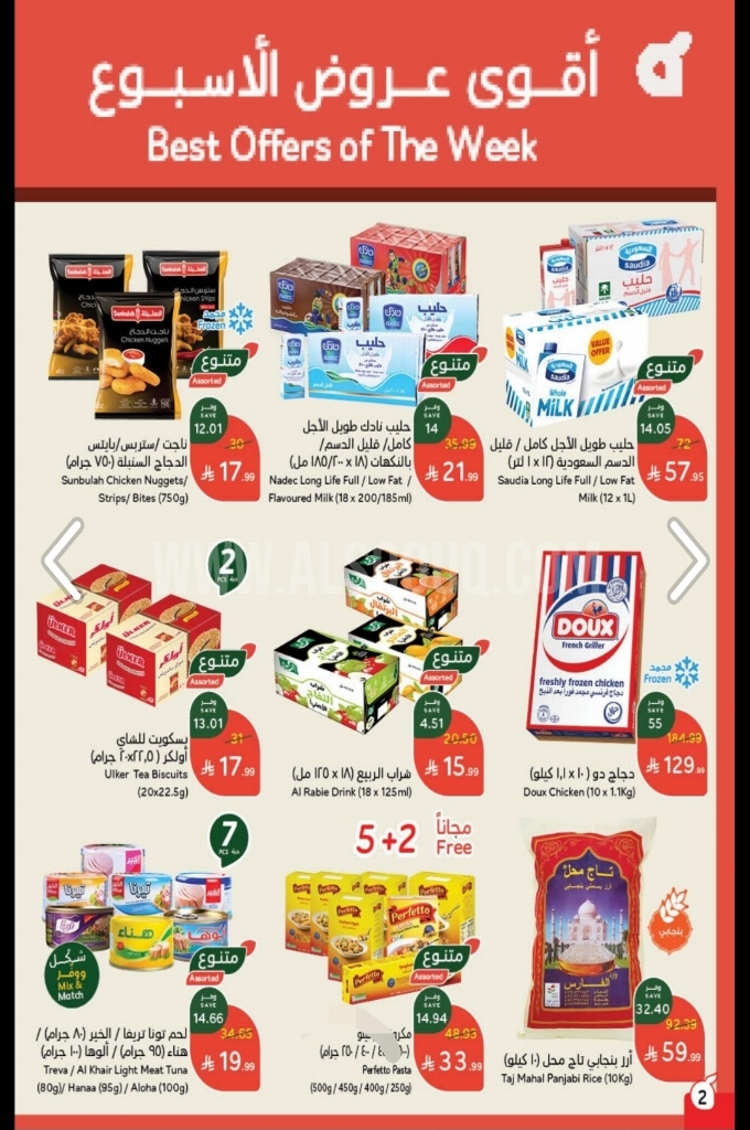 تجدون ضمن منتجات الأسبوع: أرز بسمتي أبيض من تاج الهند، مسحوق غسيل أريال، زيت زيتون بكر ممتاز من نادك، زيت ذرة عافية، زيت دوار الشمس عافية، زيت نباتي عافية، زيت عباد الشمس أبو زهرة، زيت دوار الشمس نور، وإليكم الصور الآتية على موقع عروض