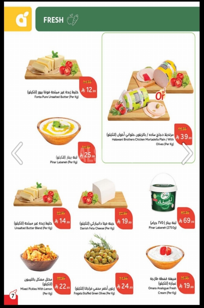 تجدون ضمن منتجات الأسبوع: جبنة شيدر فيكتوريا، جبنة رومي مصرية، جبنة قشقوان هنغارية، كريمة طبخ المراعي غير مملحة، جبنة شرائح كرافت شيدر، زبادي تركي زادنا، لبنة طازجة الصافي، حليب سائل المراعي، وإليكم الصور الآتية على موقع عروض
