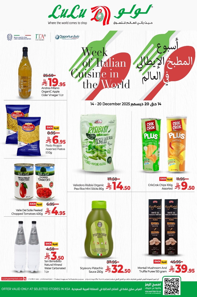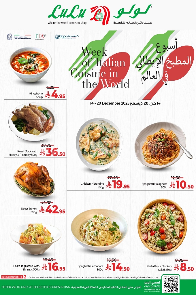 عروض لولو الدمام اليوم 14 ديسمبر 2025 الموافق 23 جمادى الآخر 1447 أسبوع المطبخ الإيطالي في العالم