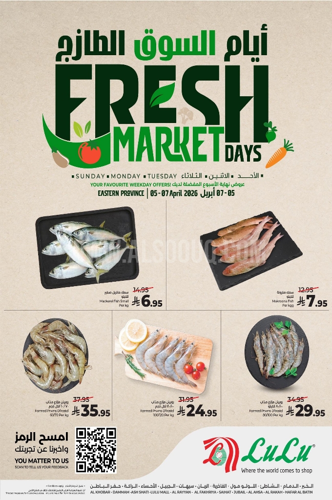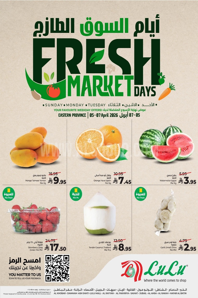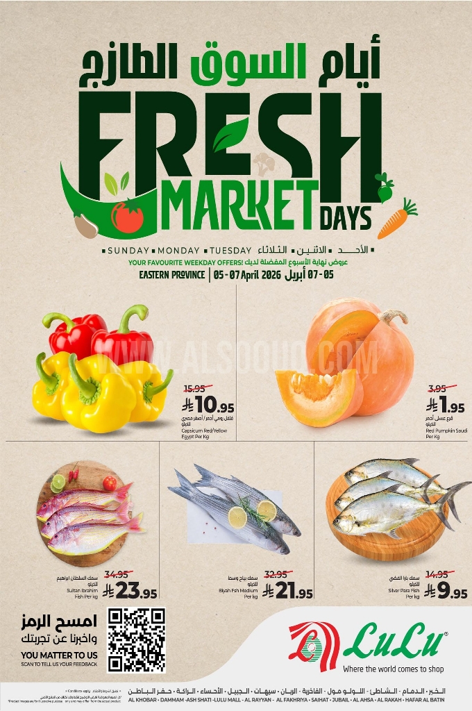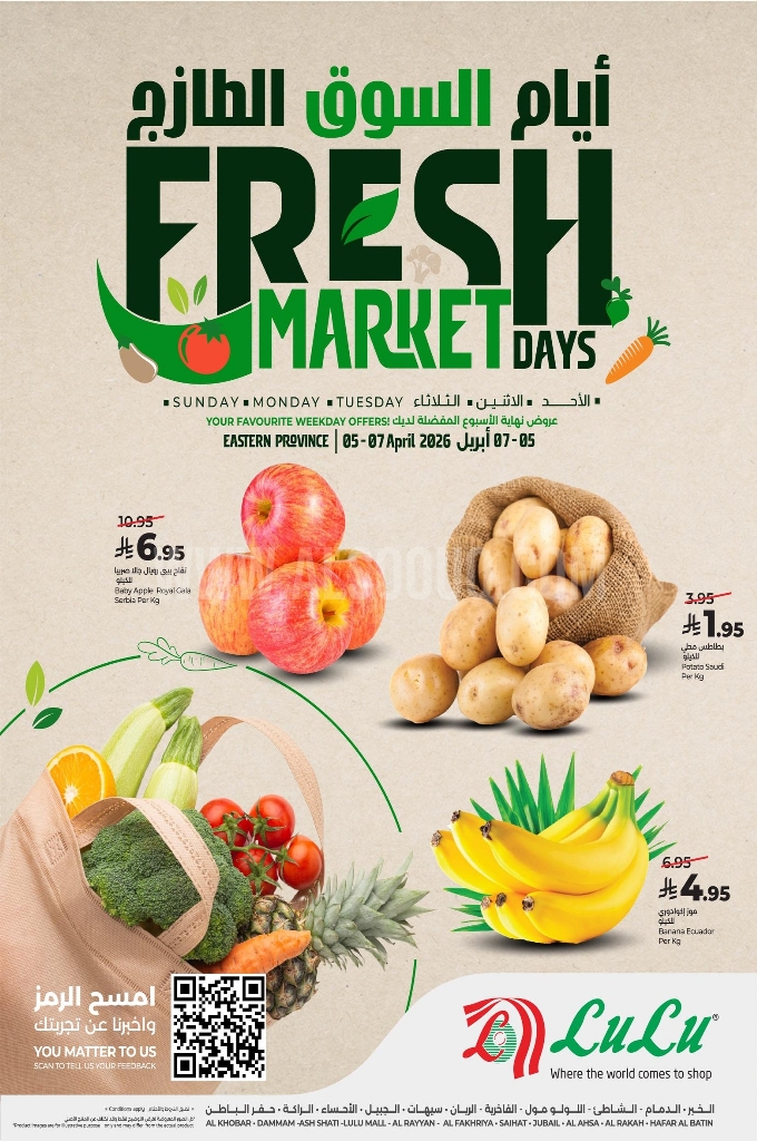 عروض لولو الدمام اليوم 5 أبريل 2026 الموافق 17 شوال 1447 منتجات الفريش وصلت لــ 3 أيام