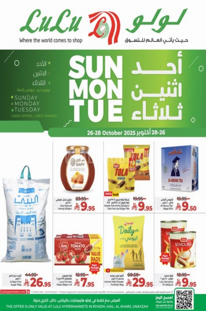 عروض لولو الرياض اليوم 25 أكتوبر 2025 الموافق 3 جمادى الاولى 1447 عروض الأحد والاثنين والثلاثاء