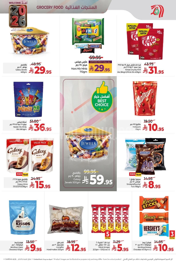 تجدون ضمن منتجات اليوم مع بداية العام الجديد: سنيكرز ميني، تويكس ميني، باونتي ميني، جالكسي ميني، إم أند إمز، هالة زيت دوار الشمس، عافية بلس أوميقا 3، عافية زيت دوار الشمس، عافية زيت زيتون بكر ممتاز، ساسو زيت زيتون نقي، وإليكم الصور الآتية على موقع عروض