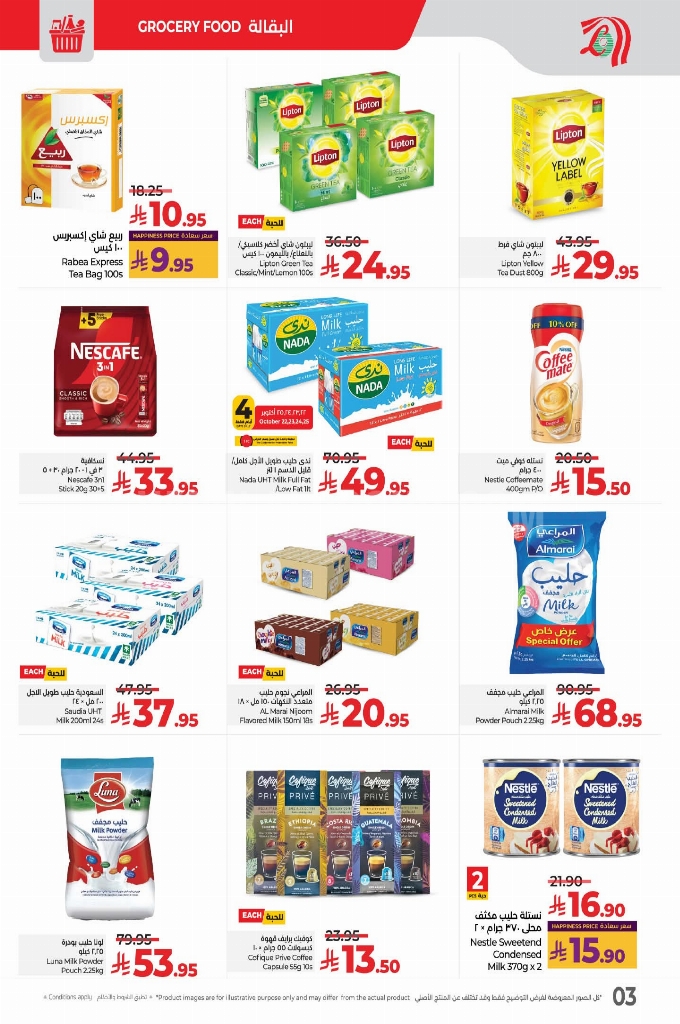 تجدون ضمن منتجات الأسبوع: فستق محمص ليمون/سادة/كجم, عين الجمل/كجم, لوز 20-32 سادة/كجم, زبيب ذهبي/كجم, تمر سكري الهايا 550 جم, صن فلاور زيت دوار الشمس 950 مل, الكروس شاي 100 كيس, ديتول/فيري سائل غسيل الأيدي 500 مل. وإليكم الصور الآتية على موقع عروض