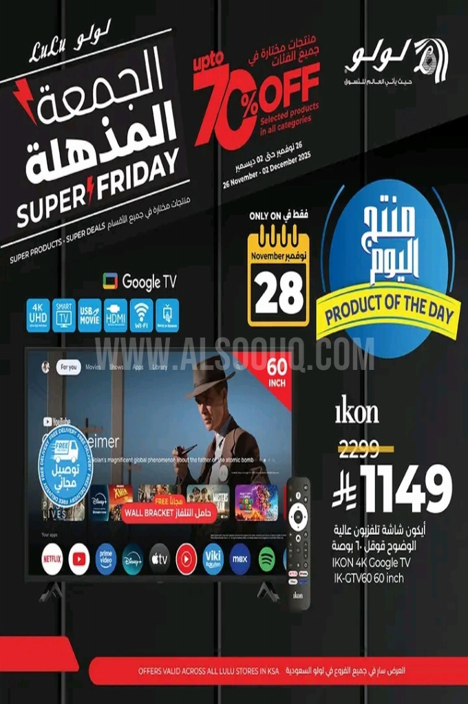 عروض لولو الدمام اليوم 28 نوفمبر 2025 الموافق 7 جمادى الاخر 1447 عروض الجمعة المذهلة . الجودة تصنع فرقاً والعروض تصنع قرارك! اختر الذكاء اليوم وابتسم للصفقة غداً.