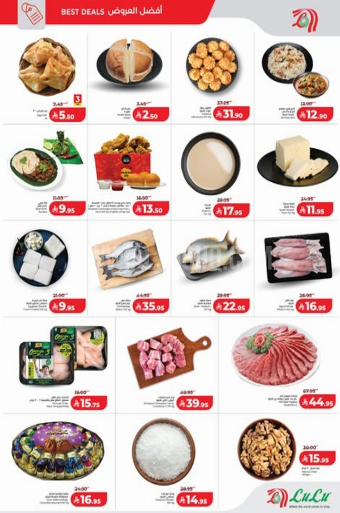 حليب بروتين المراي، جبنة شيدر، زبدة غير مملحة، مرتديلا بقري، مرتديلا دجاج، جبنة عكاوي، جبنة بارميزان، لبنة تركية، جبنة قشقوان، زيتون أسود.تندرلوين لحم بقري، مفروم عجل طازج، موزات لحم نعيمي، فخذ لحم نعيمي، كتف تيس باكستاني وإليكم الصور الآتية على موقع عروض