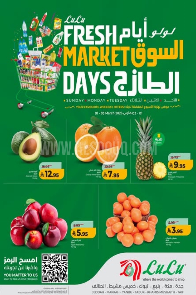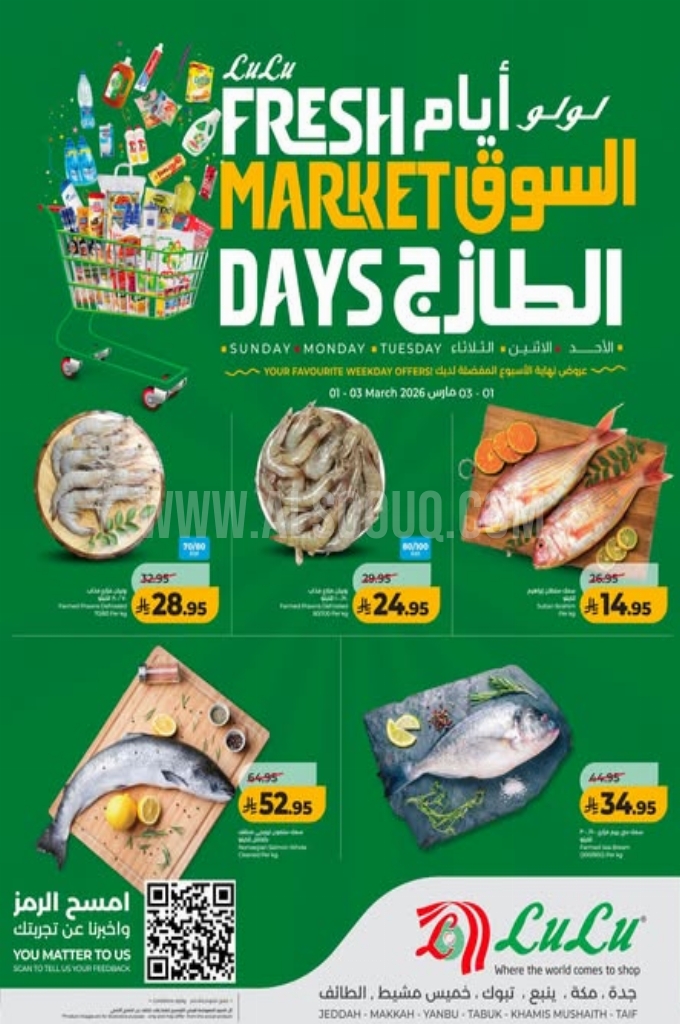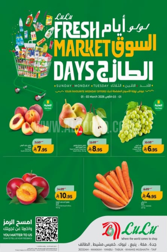 عروض لولو تبوك اليوم 28 فبراير 2026 الموافق 11 رمضان 1447 عروض أيام السوق الطازج