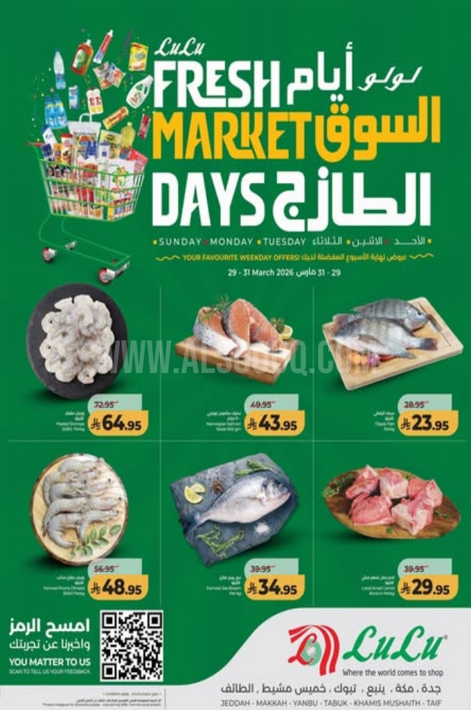 عروض لولو تبوك اليوم 28 مارس 2026 الموافق 9 شوال 1447 عروض أيام السوق الطازج