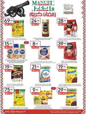 عروض مانويل الرياض والخرج الأسبوعية بصفحة واحدة 6 مارس 2024 الموافق 25 شعبان 1445 رمضان كريم. بمناسبة شهر الخير، تسوقوا عروضنا التوفيرية هنا وبدون ضريبة لجعل الحياة أسهل عليك وعلى عائلتك في هذا الموسم الرمضاني.