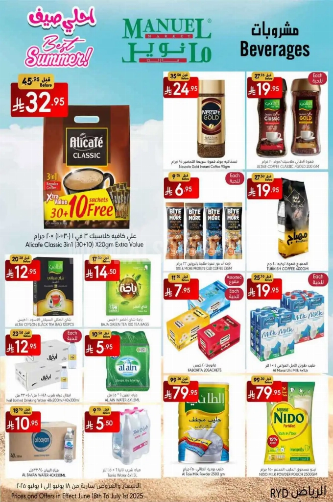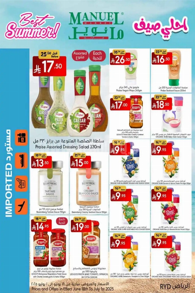 عروض مانويل الرياض والخرج الأسبوعية 18 يوينو 2025 الموافق 22 ذو الحجة 1446 أحلى صيف. وفر على العديد من المنتجات المميزة بأقوى وأفضل الحسومات، تسوق الآن مقاضيك بتوفير يرضيك. عروض مانويل الرياض لهذا الاسبوع: من ضمن منتجات هذا الأسبوع: حدائق كاليفورنيا فول مدمس بالخلطة اللبنانية 450 جرام × 3. لونا فطر مقطع شرائح جودة عالية - 400 جرام. لونا فطر كامل جودة عالية - 400 جرام. تريفا حمص 540 جرام. أطلس حمص حب 370 جرام. وإليكم الصور الآتية على موقع عروض