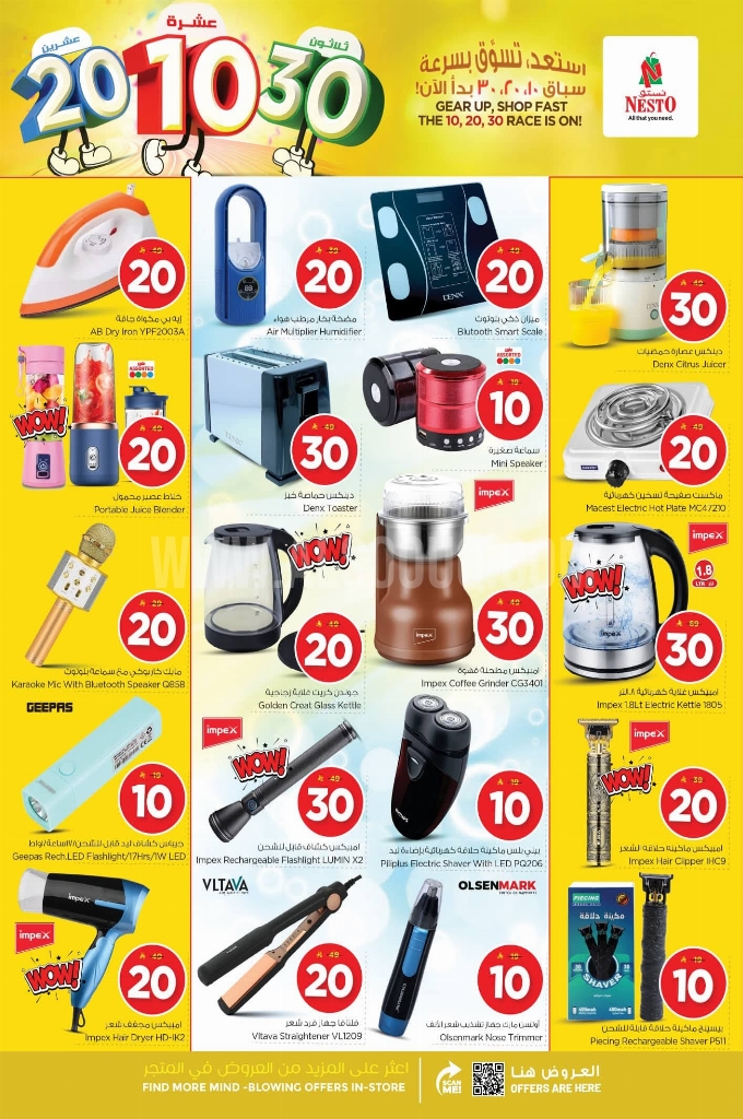 عروض نستو الرياض والخرج الأسبوعية 19 نوفمبر 2025 الموافق 28 جمادى الأولى 1447 عروض 10 و20 30 ريال. ليست مجرد خصومات إنها دعوة للتميز حين تحصل على أكثر مما تدفع فأنت في المكان الصحيح. عروض نستو الرياض لهذا الأسبوع: تجدون ضمن منتجات الأسبوع: خلاط باناسونيك فيرسا، خلاط ومطحنة مولينكس، خلاط ومطحنة ميلميكس، مصابيح فيليبس LED قابلة لإعادة الشحن. طعام قطط ويسكاس، طعام قطط شيبا. وإليكم الصور الآتية على موقع عروض