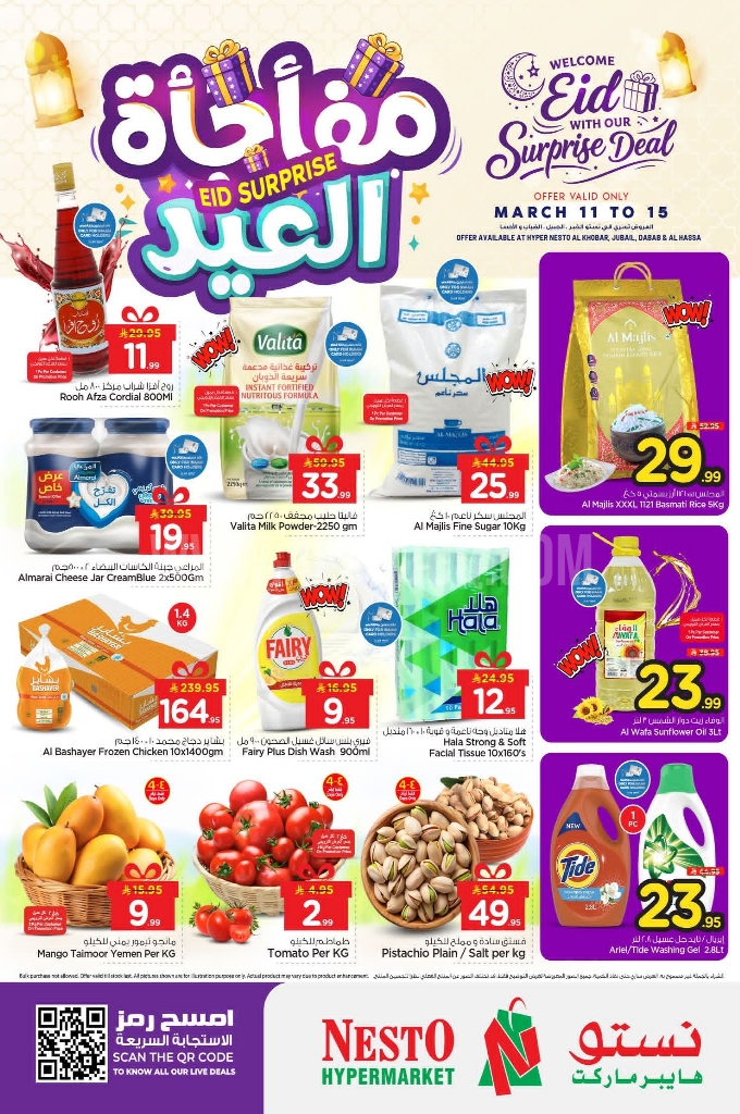 عروض نستو الدمام والخبر الأسبوعية 11 مارس 2026 الموافق 22 رمضان 1447 مفاجأة العيد. لأننا نهتم بتفاصيل يومك، صممنا لك عروضاً توازن بين ميزانيتك ورغباتك مع أفضل المنتجات وبأفضل الأسعار.