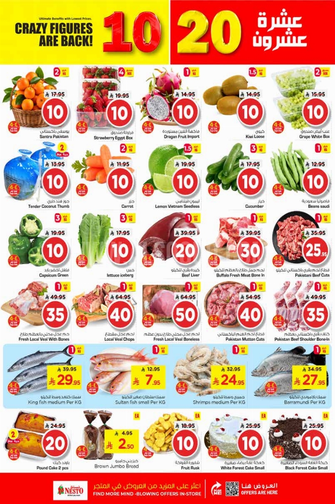 عروض نستو الدمام والخبر الأسبوعية 17 ديسمبر 2025 الموافق 26 جمادى الآخر 1447 عشرة وعشرون ريال. عروض نهاية السنة تنطلق بأقوى التخفيضات! اغتنم الفرصة ووفّر على السلع الأساسية والمنتجات اليومية قبل انتهاء الموسم.