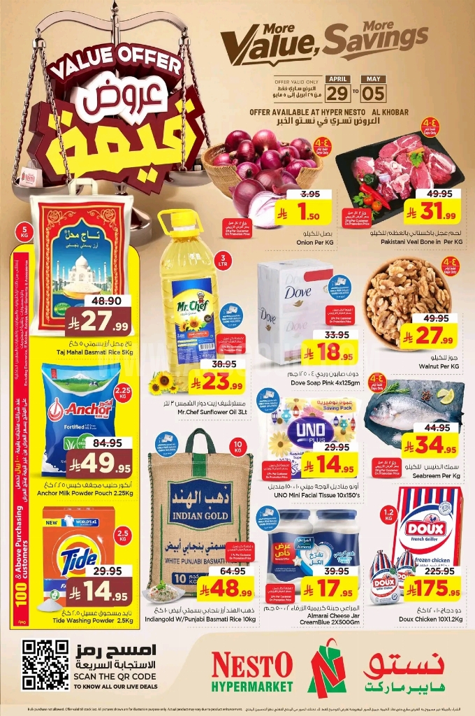 عروض نستو الدمام والخبر الأسبوعية 29 أبريل 2026 الموافق 11 ذو القعدة 1447 عروض قيمة . وفر أكثر مع أقوى التخفيضات على تشكيلة فاخرة من المنتجات التي قدمناها خصيصاً لتمنحك جودة استثنائية وسعراً لن يتكرر.