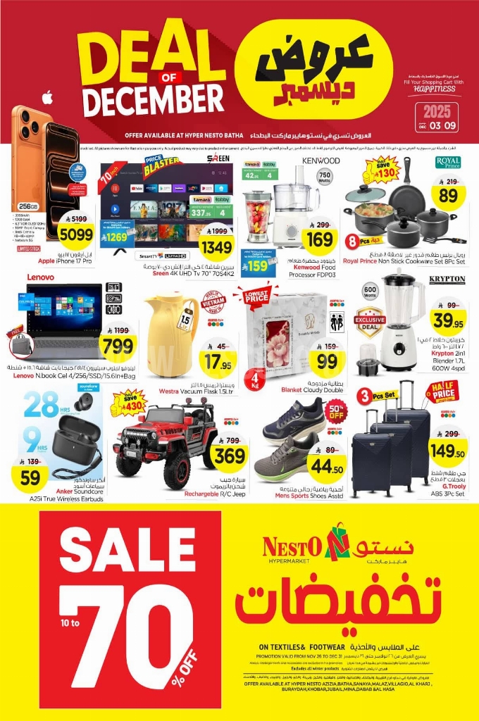عروض نستو الرياض والخرج الأسبوعية 3 ديسمبر 2025 الموافق 12 جمادى الآخر 1447 عروض ديسمبر. انطلق في تسوّق نهاية العام! استمتع بأقوى العروض والتخفيضات الحصرية قبل انتهاء الموسم. عروض نستو الرياض والخرج لهذا الأسبوع: تجدون ضمن منتجات الأسبوع: شوكولاتة ساراي، بسكويت موناكو بارلي، شوكولاتة كيندر بوينو، كوكيز تيفاني ديلايت، شوكولاتة سنيكرز مينيز، شوكولاتة أولكر، شيبس برينجلز، بسكويت كراكرز رياض. وإليكم الصور الآتية على موقع عروض