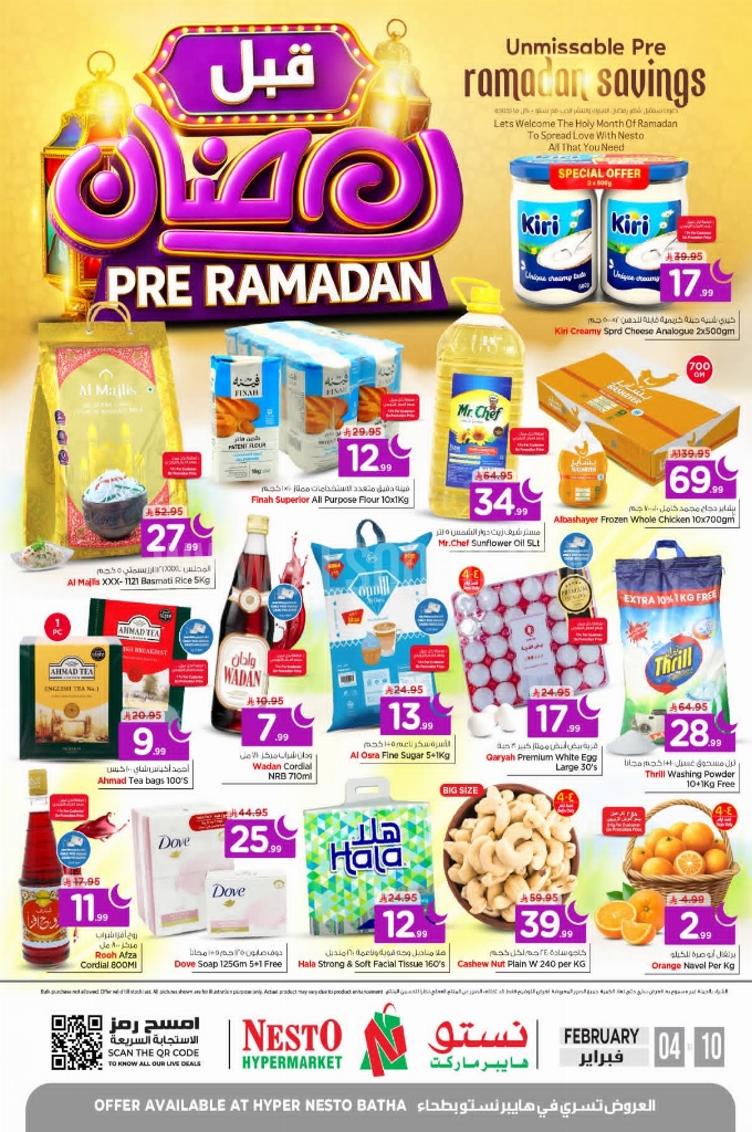 عروض نستو الرياض والخرج الأسبوعية 4 فبراير 2026 الموافق 16 شعبان 1447 عروض قبل رمضان. توفير ذكي يلبي احتياجاتكم اليومية بأسعار مدروسة تمنحكم قيمة أعلى لكل ريال، مع توفير حقيقي يناسب جميع الميزانيات.