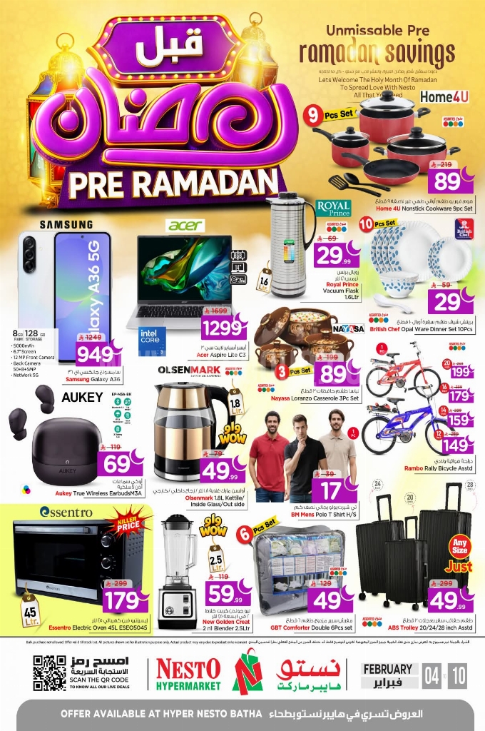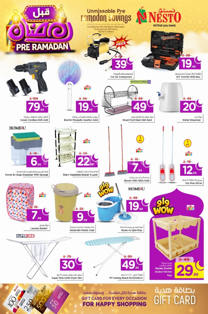 عروض نستو الرياض والخرج الأسبوعية 4 فبراير 2026 الموافق 16 شعبان 1447 عروض قبل رمضان. توفير ذكي يلبي احتياجاتكم اليومية بأسعار مدروسة تمنحكم قيمة أعلى لكل ريال، مع توفير حقيقي يناسب جميع الميزانيات. لأن رمضان يجمعنا اخترنا لك أفضل المنتجات الغذائية والأساسية بأعلى معايير الجودة وأقل التكاليف. وفر وقتك وجهدك مع عروضنا الحصرية التي تلبي كافة احتياجات منزلك. كن أول من يغتنم فرص التوفير وجهّز منزلك لرمضان واستعد لشهر الخير براحة تامة. عروض نستو الرياض لهذا الأسبوع: تسوّقوا الآن مجموعة من المنتجات المميزة المختارة بعناية بأسعار وقيمة تستحق التجربة منها: شيفلاين قطاعة خضار وفواكه، هوم علبة بهارات، هوم لوح فرد خشبي، كلينسا ممسحة، هوم موزع صابون، رول الخضار، وإليكم الصور الآتية على موقع عروض