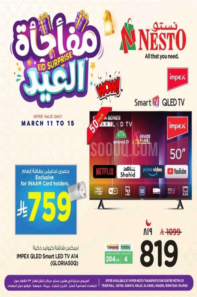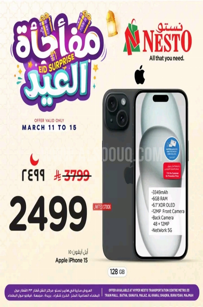 عروض نستو الرياض الأسبوعية 14 مارس 2026 الموافق 25 رمضان 1447 عروض مفاجأة العيد . الجودة تصنع فرقاً والعروض تصنع قرارك! اختر الذكاء اليوم وابتسم للصفقة غداً.