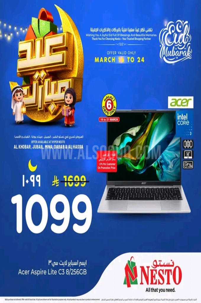 عروض نستو الدمام اليوم 16 مارس 2026 الموافق 27 رمضان 1447 عروض عيد مبارك . الجودة تصنع فرقاً والعروض تصنع قرارك! اختر الذكاء اليوم وابتسم للصفقة غداً.