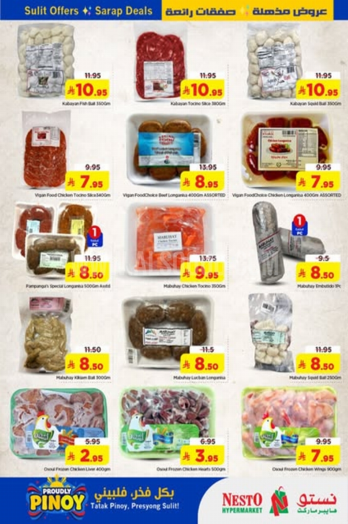 سمك سار صغير، شريحة لحم الميد، فيليه سمك قاروص البحر الأحمر، روبيان مقشر ومنظف، روبيان مقشر ومطبوخ، برتقال عصير، بطاطس كيس صغير، لحم حاشي بلدي صغير بالعظم، لحم غنم نعيمي طازج بالعظم، كبدة غنم، لحم فخذ بقر هندي بدون عظم وإليكم الصور الآتية على موقع عروض