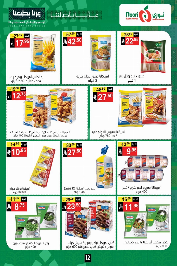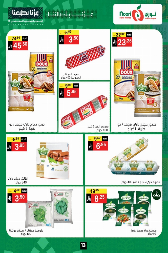 عروض نوري الأسبوعية 14 سبتمبر 2025 الموافق 22 ربيع الأول 1447 وطني عز وفخر . استعد لخصومات مذهلة وصفقات لا تقبل المنافسة تسوق منتجاتك المفضلة بأسعار لا تقاوم. عروض نوري لهذا الأسبوع: دجاج التنمية كامل, دجاج فقيه كامل, دجاج رضوى كامل, دجاج جولدن كامل, دجاج فقيه قطع مشكلة, فيليه صدور دجاج رضوى, أجنحة دجاج التنمية, سيقان دجاج بيري دكس, فيليه دجاج فقيه, دجاج رضوى ستربس, دجاج الكبيدر برجر, دجاج الكبيدر ناجتس, دجاج الكبيدر ستربس. وإليكم الصور الآتية على موقع عروض