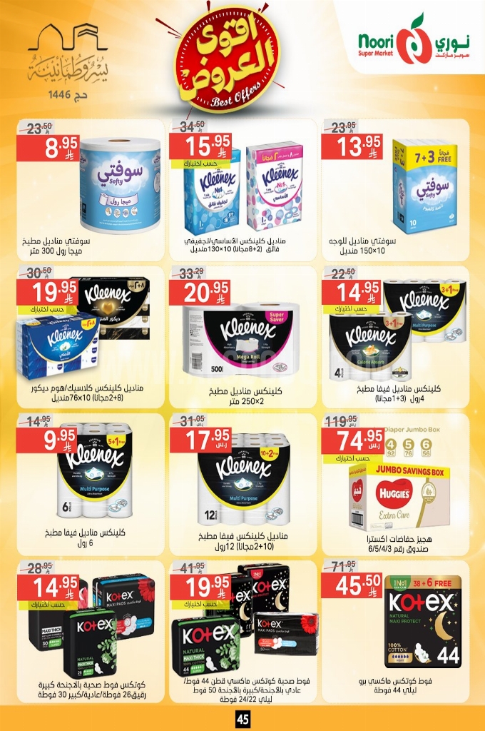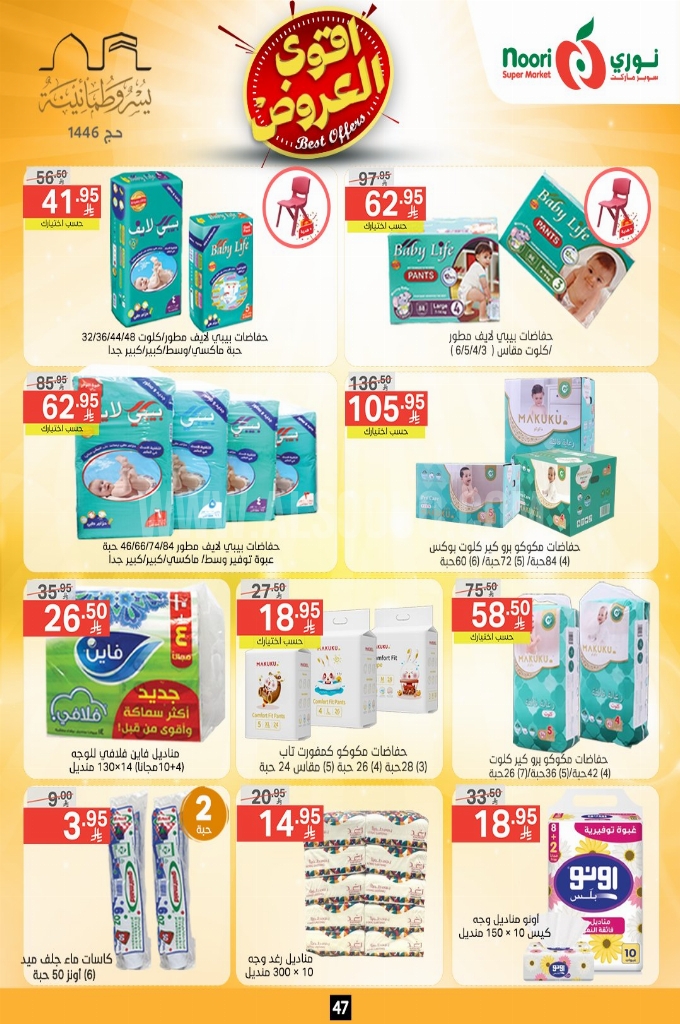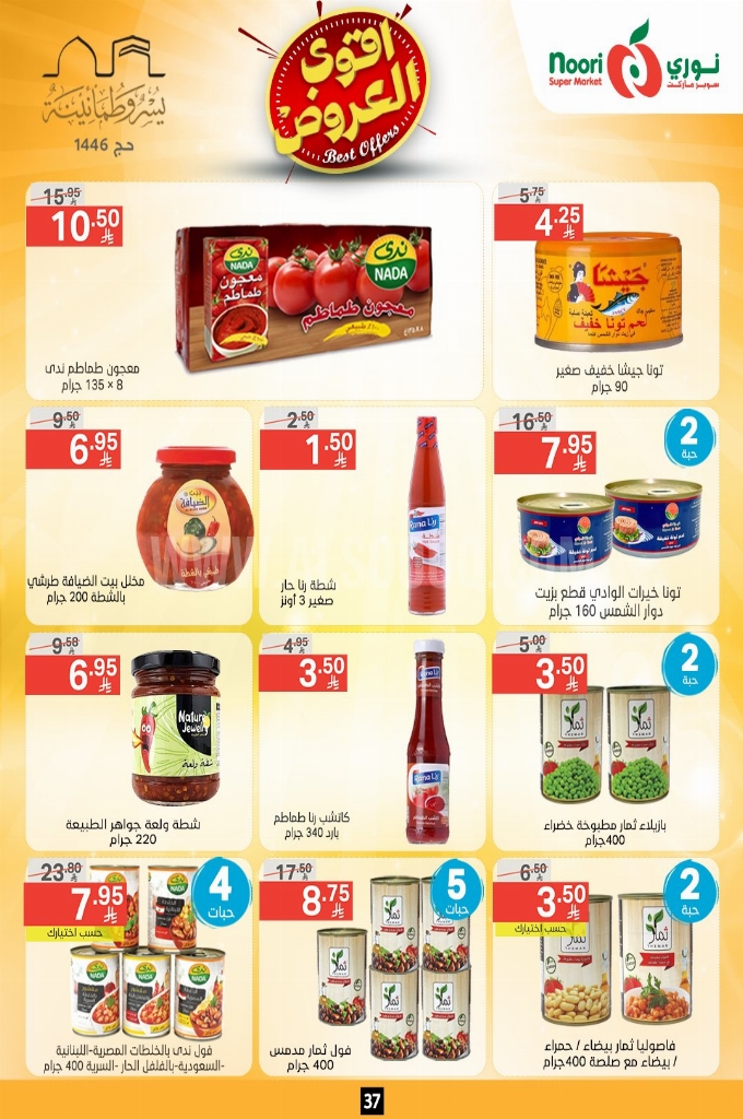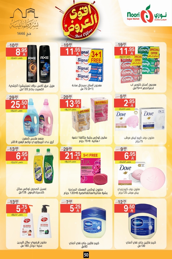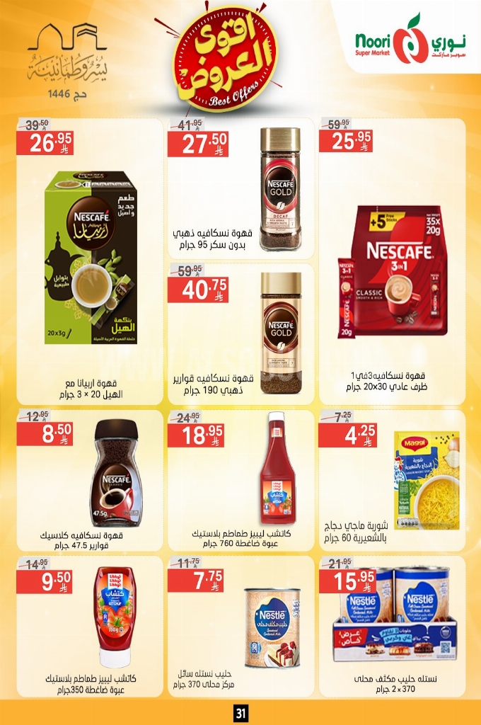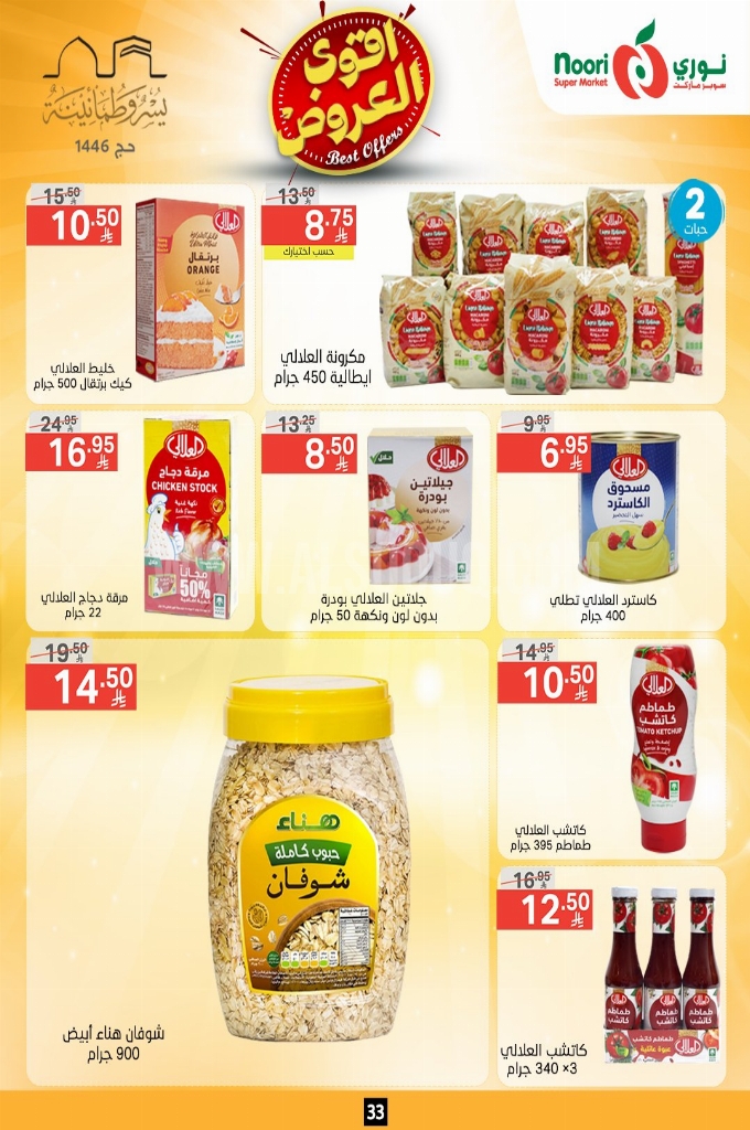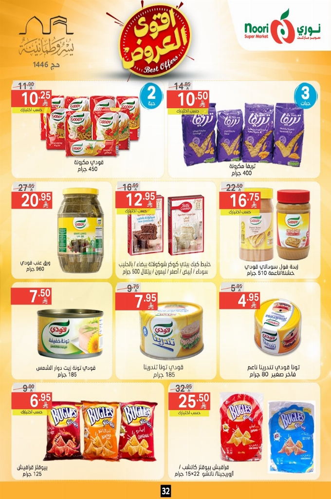 عروض نوري الأسبوعية 28 مايو 2025 الموافق 1 ذو الحجة 1446 أقوى عروض عيد الأضحى. عروض لا تفوت بمناسبة موسم الحج! تسوق من مجموعتنا المختارة واستفد من مختلف التخفيضات الكبرى على جميع احتياجاتكم. عروض نوري لهذا الأسبوع: تجدون ضمن منتجات هذا الأسبوع: لوزين كرواسان تصبيرة الزبدة و الزعتر 80 جرام. سفن دايز كرواسان بحشوة الفراولة 55 جرام 5+1 مجانا. سفن دايز كرواسان بحشوة الفراولة والفانيلا 90 جرام. سفن دايز كرواسان بحشوة الفانيلا و الكاكاو 55 جرام. سفن دايز كرواسان بحشوة الفانيلا 55 جرام. وإليكم الصور الآتية على موقع عروض