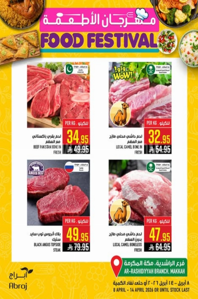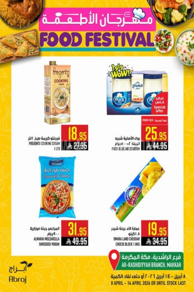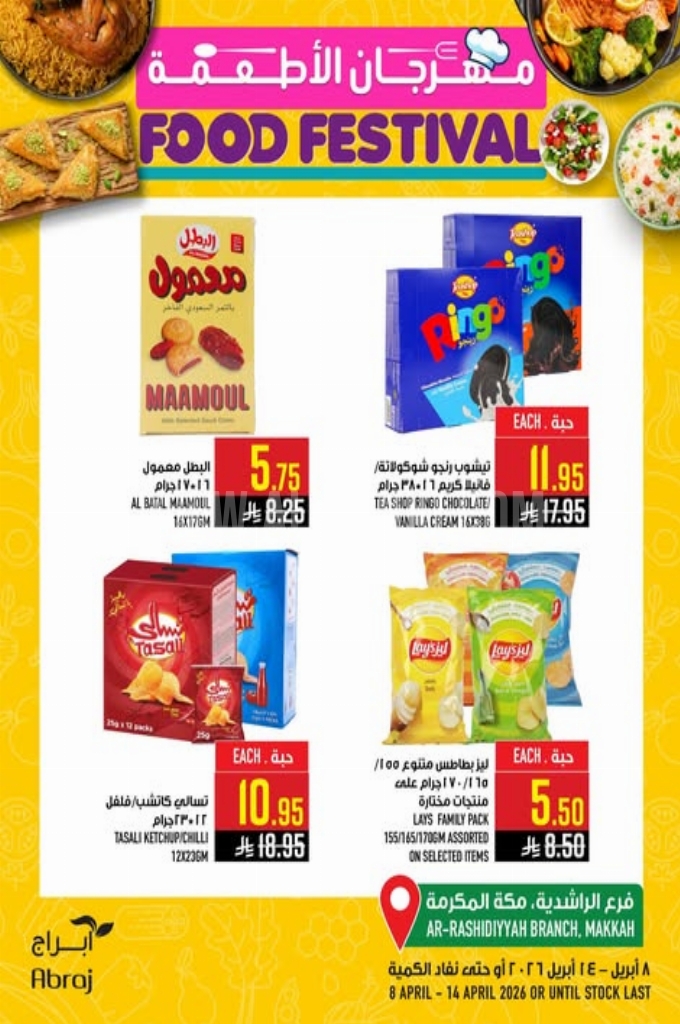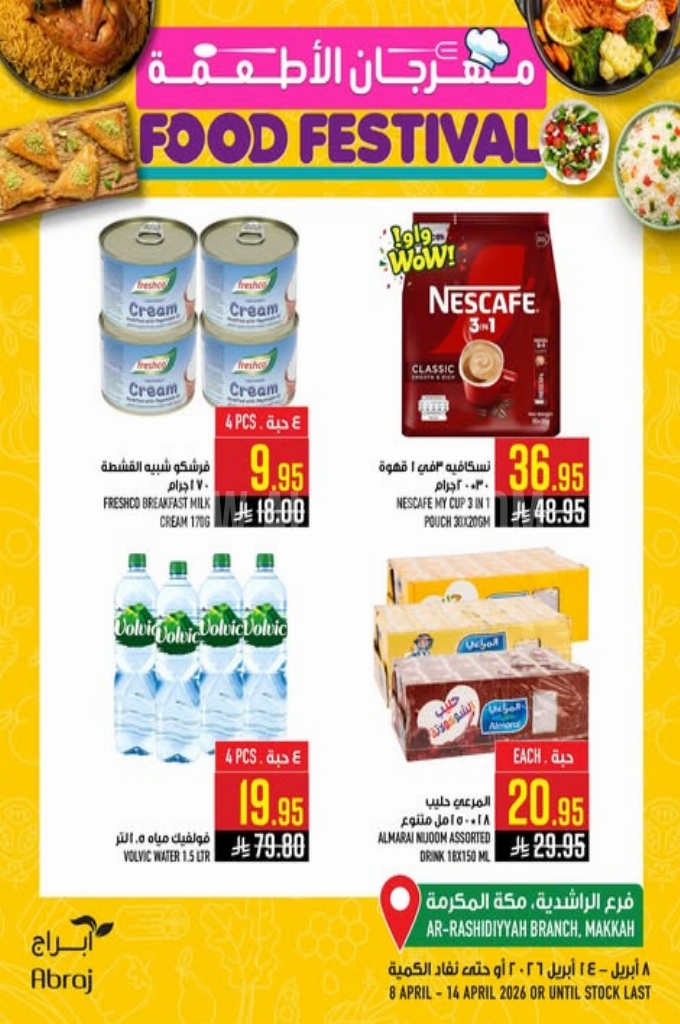 عروض أبراج هايبر اليوم 13 أبريل 2026 الموافق 26 شوال 1447 عروض مهرجان الأطعمة . استعد لخصومات مذهلة وصفقات لا تقبل المنافسة تسوق منتجاتك المفضلة بأسعار لا تقاوم.