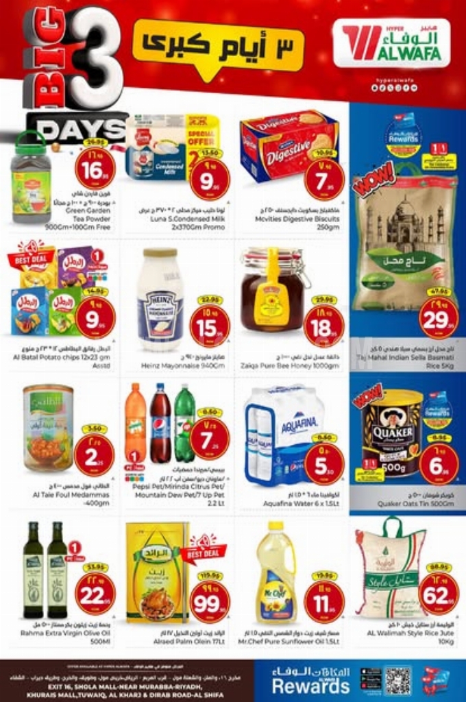 عروض الوفاء هايبر اليوم 15 نوفمبر 2025 الموافق 23 جمادى الاولى 1447 عروض 3 أيام كبرى