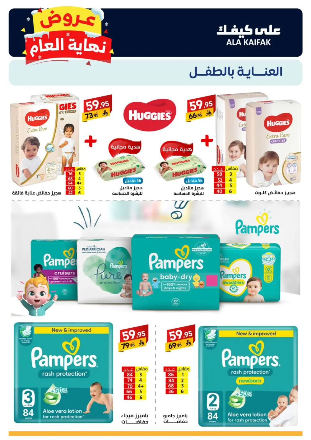 حفاضات هجيز مع هدايا مجانية بأسعار تبدأ من 59.95 ريال.
