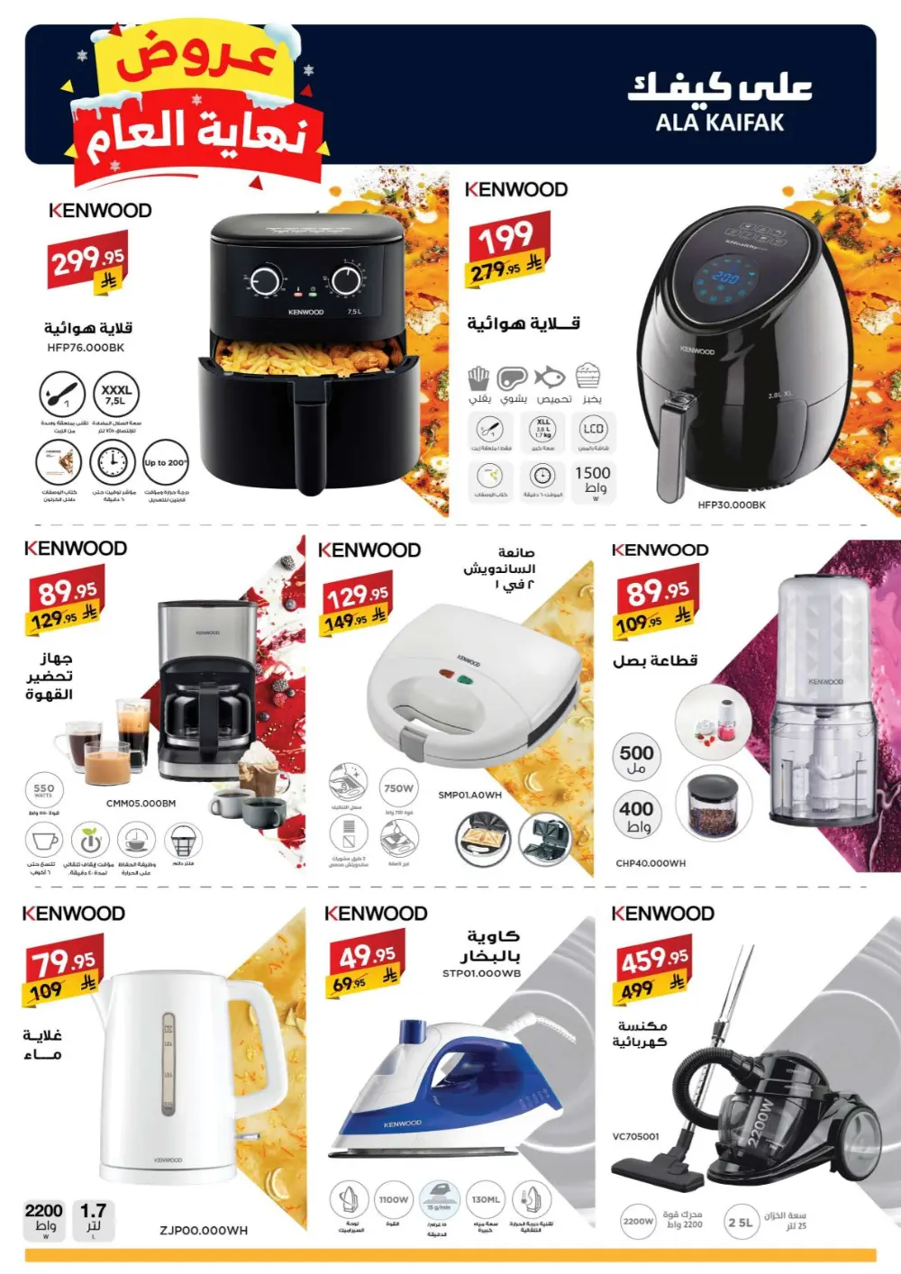 ولمحبي الأجهزة المنزلية، فقد وفرت “على كيفك” خصومات لافتة، أبرزها: