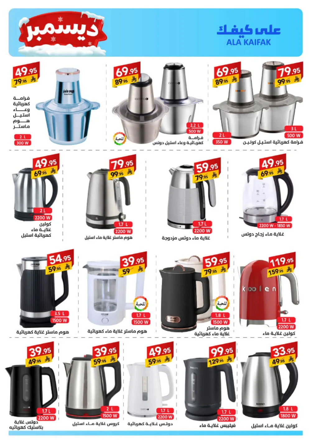 أطلقت محلات “على كيفك” (ALA KAIFIK) حملة عروض واسعة في شهر ديسمبر، تركز بشكل كبير على أجهزة التدفئة والمستلزمات المنزلية الضرورية للموسم البارد، بالإضافة إلى المنظفات ومنتجات العناية الشخصية ومكافحة الحشرات.