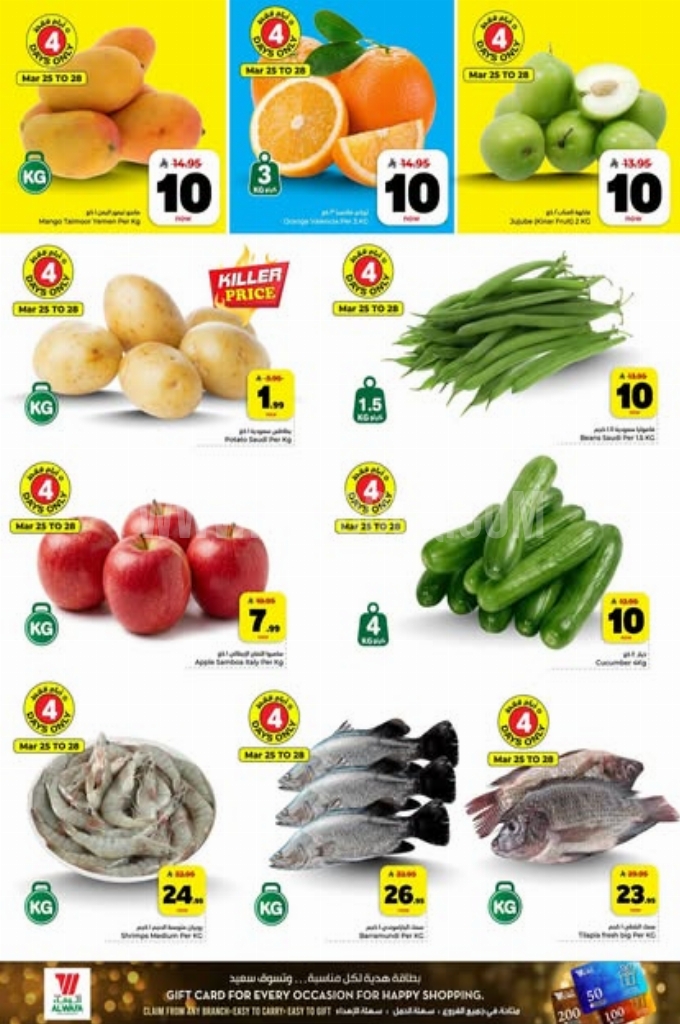 عروض الوفاء هايبر اليوم 24 مارس 2026 الموافق 5 شوال 1447 عروض حماسية . استعد لخصومات مذهلة وصفقات لا تقبل المنافسة تسوق منتجاتك المفضلة بأسعار لا تقاوم.