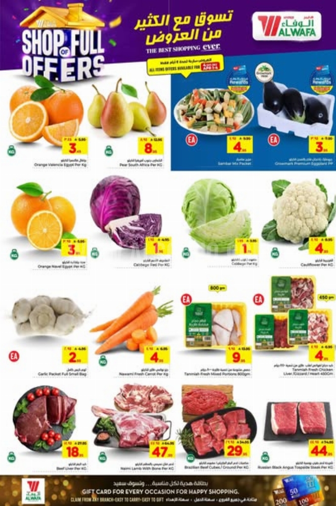 عروض الوفاء هايبر اليوم 30 مارس 2026 الموافق 11 شوال 1447 عروض التسوق الكبرى . استعد لخصومات مذهلة وصفقات لا تقبل المنافسة تسوق منتجاتك المفضلة بأسعار لا تقاوم.
