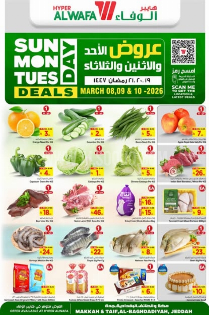 عروض الوفاء هايبر اليوم 7 مارس 2026 الموافق 18 رمضان 1447 عروض الأحد والاثنين والثلاثاء . استعد لخصومات مذهلة وصفقات لا تقبل المنافسة تسوق منتجاتك المفضلة بأسعار لا تقاوم.